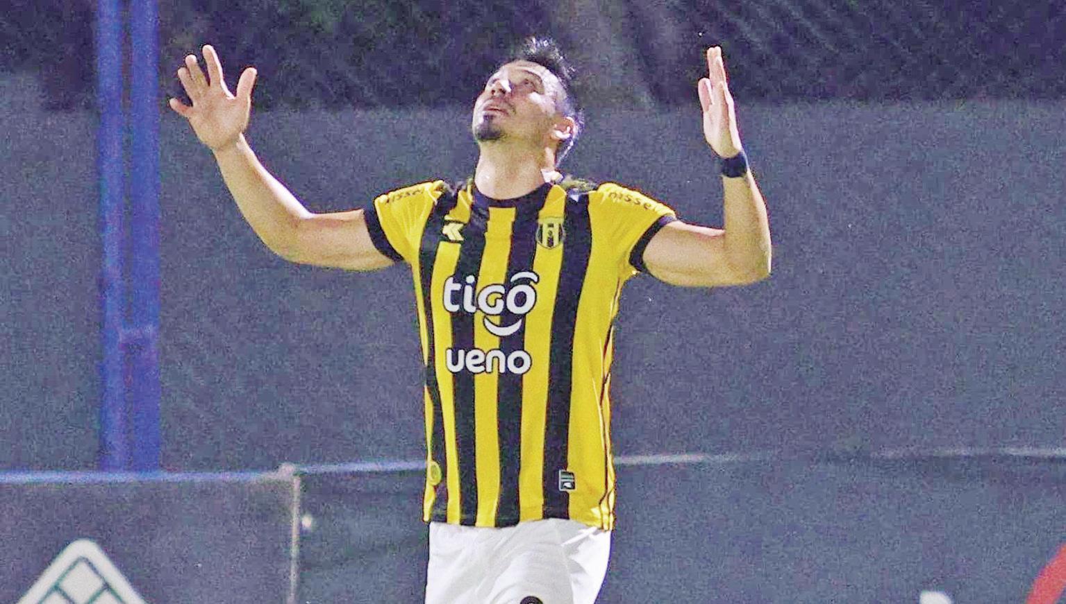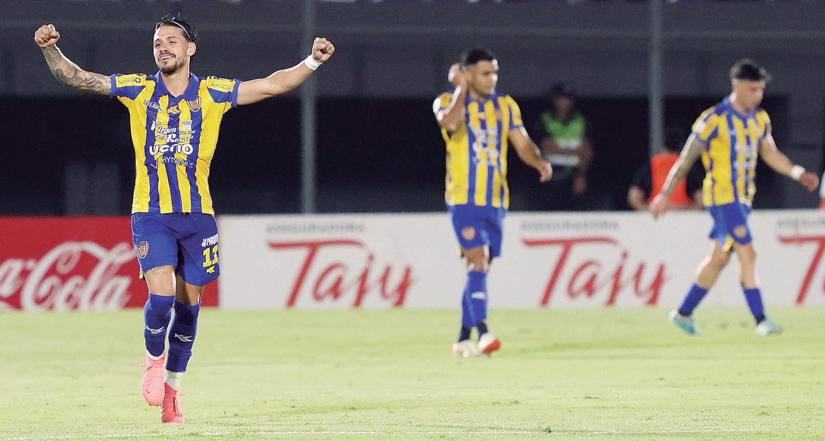 Elvio Vera, figura de Luqueño, festeja el tanto auriazul. Él forzó el error de León, que metió la pelota en su propio arco