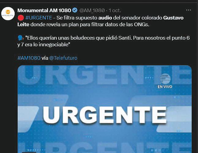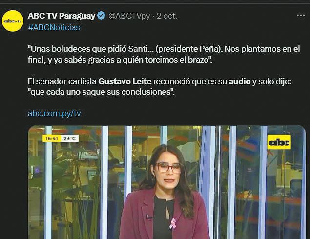 Abc dio el primer paso con la filtración del audio el 1 de octubre. Esa misma tarde, Telefuturo, Monumental AM y Última Hora, propiedad del Grupo Vierci, siguió reproduciendo el audio pretendiendo instalar una falta de respeto al presidente por parte de Leite y también para atacar la Comisión Bicameral de Investigación de lavado de dinero, de la que el legislador forma parte. El esquema se repitió una vez más. Al igual que en mayo de 2022, cuando los medios de los grupos Zuccolillo y Vierci amanecieron con las mismas portadas repitiendo el informe ilegal de la Seprelad para atacar al expresidente Horacio Cartes.