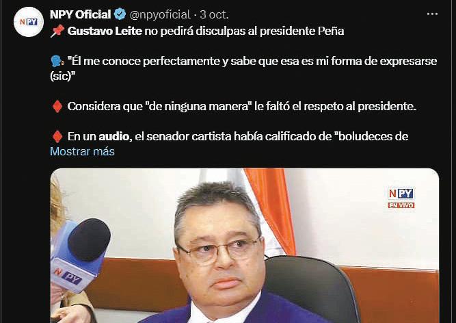 Otro de los que replicó el pedido de renuncia de Leite fue el periodista Benjamín Fernández Bogado, el mismo que durante mucho tiempo dijo ser alumno de Harvard sin haberlo sido y que también recibió fondos a título personal y a través