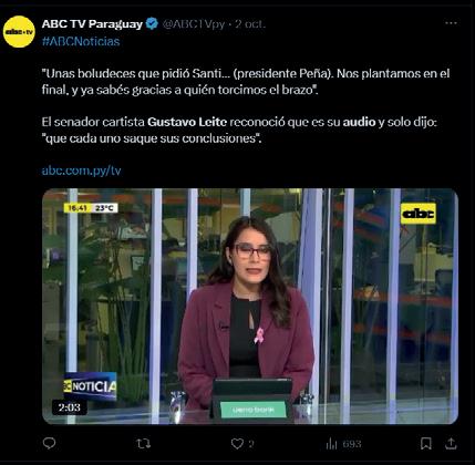 El 3 de octubre, Abc Color, del Grupo Zuccolillo, lanzó un ataque mediático sobre los vínculos de Leite con la Asociación Civil Comunidad Cenáculo, presentando su relación como un secreto, lo que resultó ser falso. Una simple búsqueda en Google revela que en 2021 el canal GEN ya había entrevistado a Leite como tesorero de la oenegé, y que, en 2023, el Arzobispado de Asunción