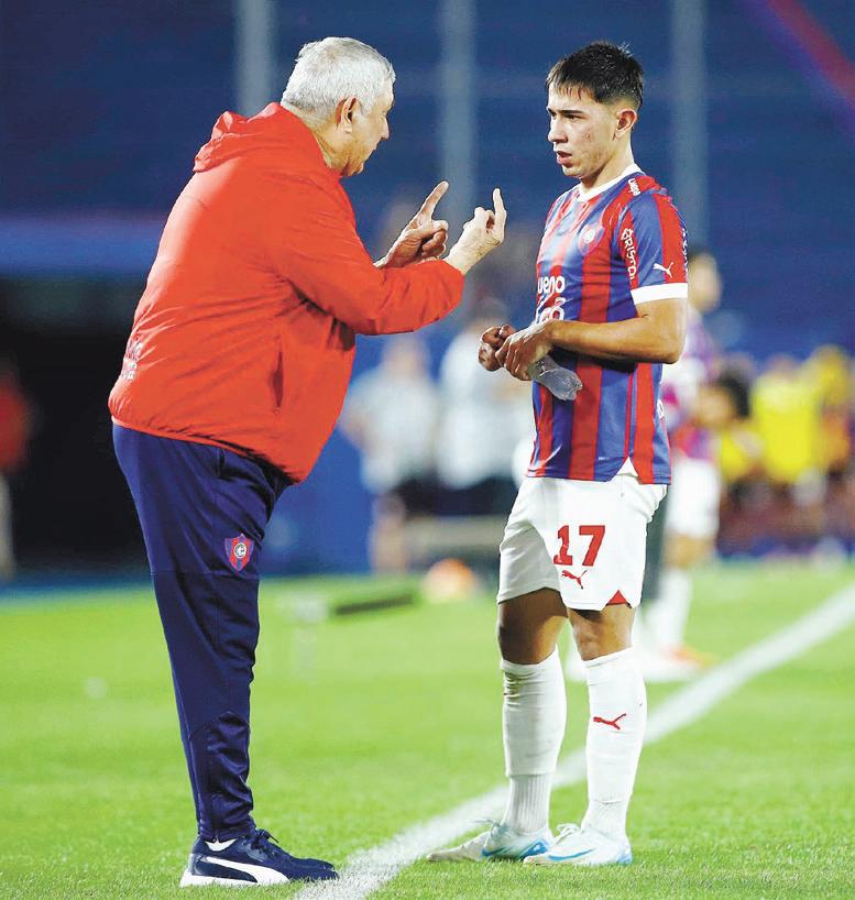 Gabriel Aguayo recibe indicaciones del DT Carlos Jara Saguier