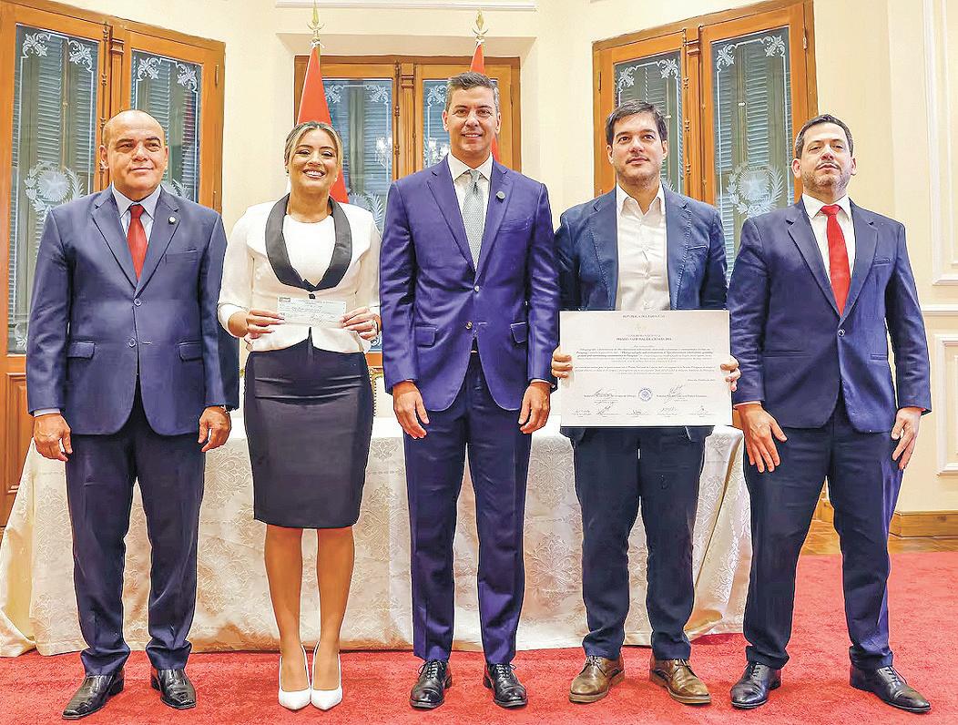El presidente de la República, Santiago Peña, encabezó la entrega del Premio Nacional de Ciencias 2024, a la destacada investigación “Filogeografía y transmisión de Mycobacterium tuberculosis, abarcado a prisiones y comunidades vecinas en Paraguay”.