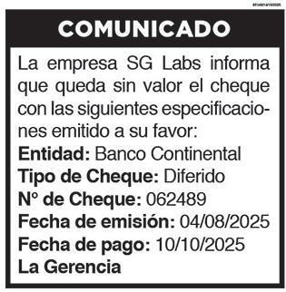 NARIA DE ACCIONISTAS que se realizará el 23 de octubre de 2025, a las 12:00 hrs, en la sede social de la compañía, sito Avda. Mcal. López N.° 930 entre Gral. Aquino y Gral. Bruguéz, de la ciudad de Asunción, República del Paraguay, en caso de que en ésta no pudiera obtenerse el quorum necesario, la asamblea quedará válidamente constituida en segunda convocatoria en la misma fecha, una hora después de la fijada para la primera, con la concurrencia prevista en el estatuto social, a fin de tratar el siguiente:
