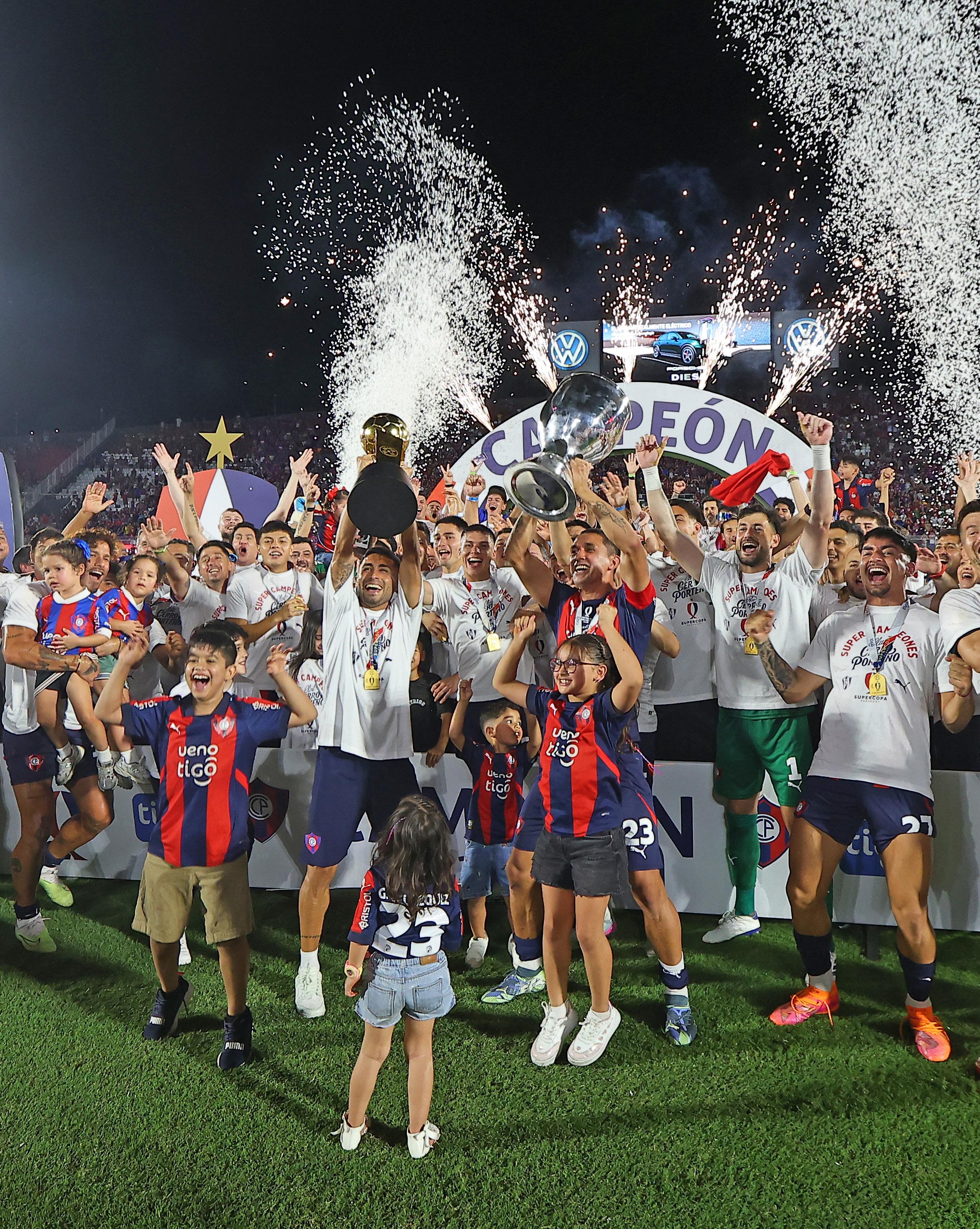 Los jugadores del Ciclón ante el enjambre de fotógrafos tras recibir el trofeo de la Supercopa Paraguay, que la ganó por primera vez. El cuadro azulgrana fue el mejor de la temporada El Ciclón rompió la sequía de títulos, ganó por primera vez uno de ellos y consolidó un plantel para la temporada que viene.