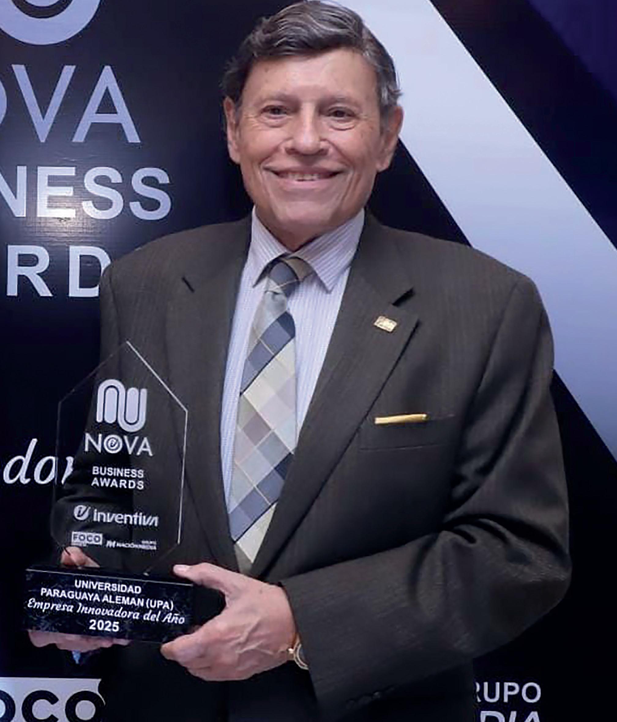Los Premios NOVA Business Awards e Inventiva Innovation Time 2025 distinguieron a 15 empresas paraguayas que destacan por su apuesta sostenida a la innovación. El ingeniero Eduardo Felippo, presidente de la Universidad Paraguayo Alemana, recibió el Premio Innovador del año rubro Universidad. Es uno de los ganadores del Nova Business Awards 2025.