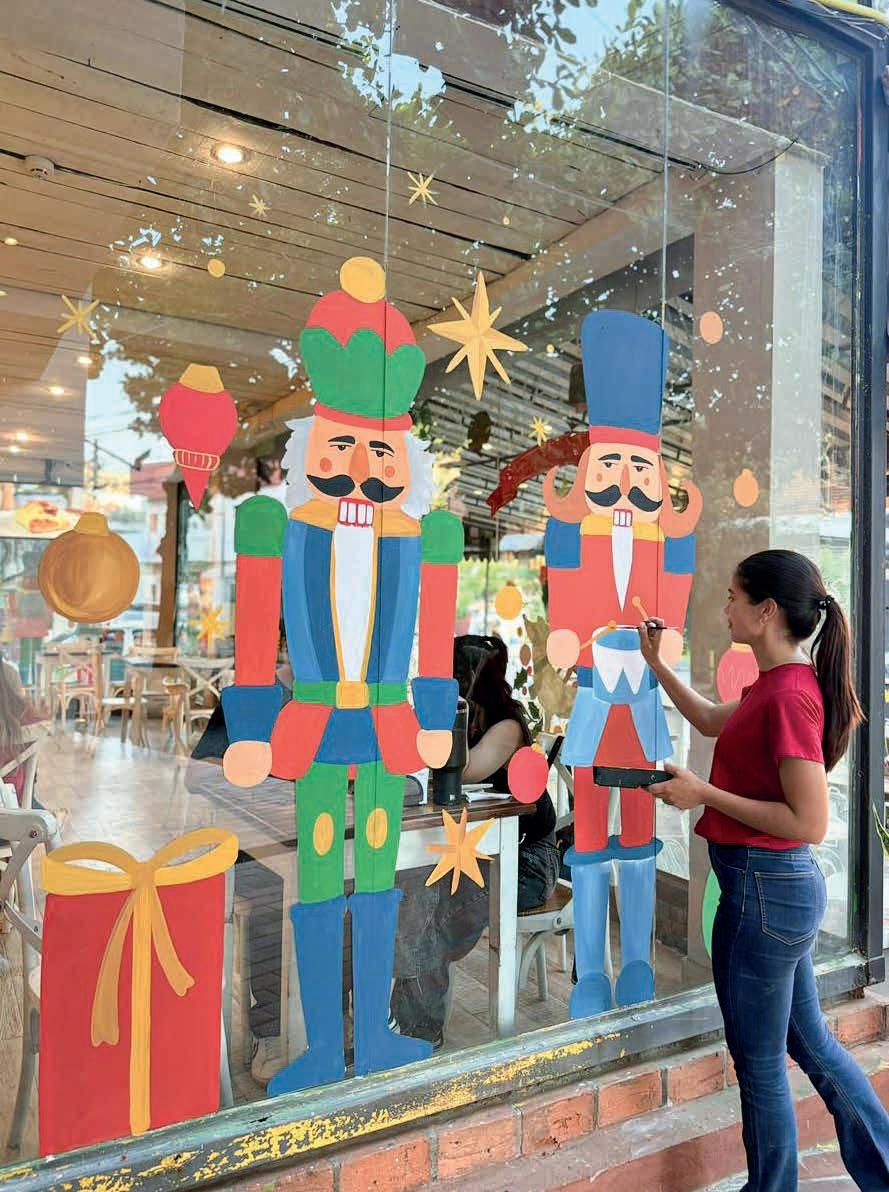 En diciembre, los diseños de la emprendedora se multiplican y decoran vidrieras de shoppings, marcas y locales comerciales.