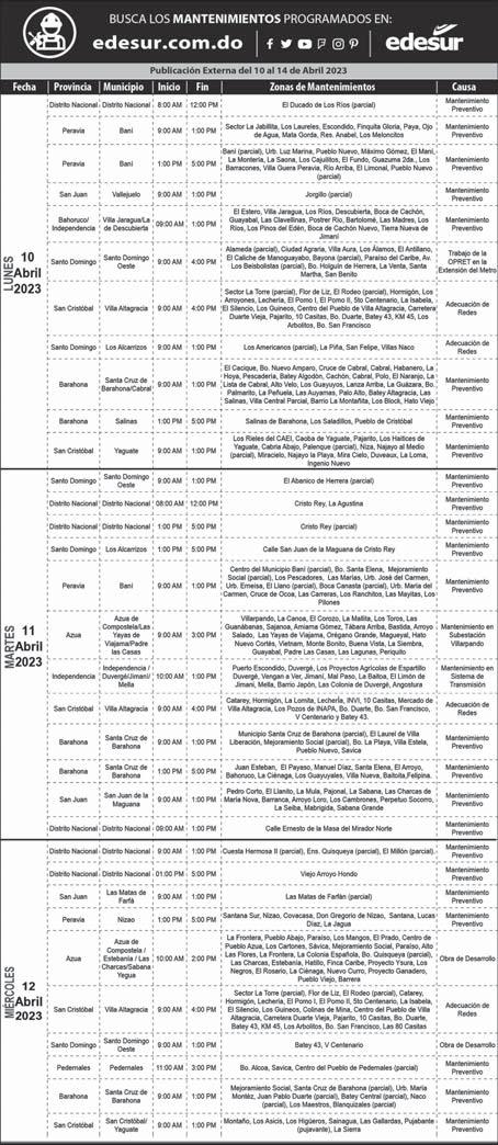 Cornelia Pimentel Beato. Blandino Ozama. Cristo Redentor. 9:30 a.m. José Enrique Hernández Machado. Blandino Lincoln. Puerta del Cielo. 3:00 p.m.
