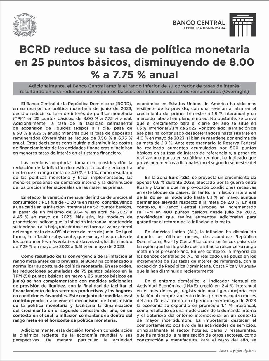 Banco Central continúa con su política de reducir la tasa de interés y declara otra baja. P24