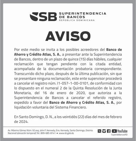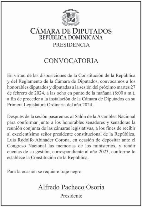 Noticias OpiniónRevistaDeportes Jueves, 22 de febrero de 2024 DiarioLibre. 8 /