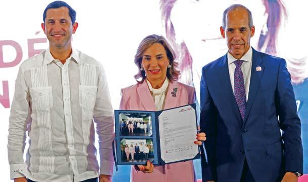 SD. Roberto Herrera, miembro, y Edwin De los Santos, presidente de la Cámara Americana de Comercio (Amchamdr), entregaron un pergamino de reconocimiento a doña Haydée Kuret de Rainieri, durante un almuerzo que celebraron ayer y en el que se tocaron diversos temas económicos, incluyendo los incentivos al turismo y los puntos más importantes que la Cámara considera para una buena reforma fiscal. P19