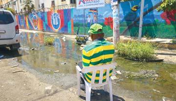SANTO DOMINGO OESTE. La falta de mantenimiento de filtrantes en la calle Isabel Aguiar esquina Guarocuya, frente a la llamada bomba de Polanquito, obliga a la gente a caminar por la calle porque la acera es una laguna verde, hábitat de todo tipo de alimañas. El agua es verde, con lama y basura de todo tipo por doquier, por el tiempo que tiene estancada y ya la gente se acostumbró a caminar por la calle para no tener que saltar como sapo por los pocos espacios que dejan las aguas. Hace años que a los filtrantes no se les da mantenimiento y poco parece importarle a las autoridades.
