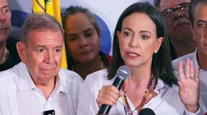 “Tenemos el 73,20% de las actas y, con este resultado, nuestro presidente electo es Edmundo González Urrutia”, aseguró Machado, indicando que ni siquiera si el mandatario venezolano obtuviera el 100 % de los votos de las actas que no pudo verificar la oposición le alcanzaría para superar a González. b AP