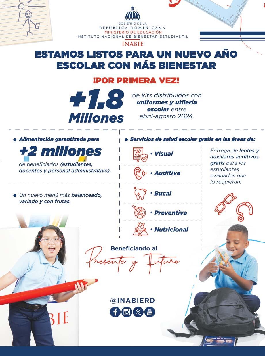 Ayer se llevó a cabo un acto de inauguración del año escolar en la Escuela Yluminada Mejía, encabezado por el presidente Luis Abinader en el que indicó que debe hacerse una mayor y mejor inversión en la educación. En la actividad, el ministro de Educación Ángel Hernández estableció que se está trabajando para que este sea un año exitoso. Dijo que en su gestión resolvió la falta de butacas en las escuelas. Algo en lo que la Asociación Dominicana de Profesores (ADP) no estuvo de acuerdo, ya que en un estudió indicó que existe un déficit de pupitres en el 47 % de las escuelas.
