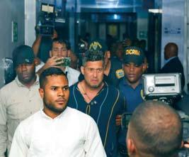 SANTO DOMINGO. Wesly Vicent Carmona (el Dotolcito), quien fue condenado a 15 años de prisión por robo agravado y asociación de malhechores por el atraco en el que Joshua Fernández fue asesinado, se limpia el sudor y luce pensativo durante la audiencia de ayer, en la que tanto él, como los demás condenados, Alison de Jesús Pérez Mejía (Chiquito) y Luis Brito Troncoso (Luisito), apelaron sus condenas ante la Corte de Apelación. P9 .
