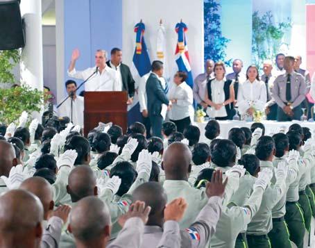 GASPAR HERNÁNDEZ. El presidente Luis Abinader encabezó ayer la ceremonia de graduación y juramentación de 1,016 nuevos agentes que concluyeron el Curso Básico de Formación Policial en la Escuela de Entrenamiento Policial de Gaspar Hernández, programa bajo la reforma de la Policía Nacional. El Jefe de Estado reiteró su compromiso de continuar impulsando la reforma policial y recordó a los reclutas que tienen una gran responsabilidad. b P12