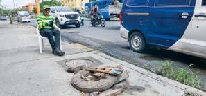 SD. Todo el que transita por la avenida Expreso V Centenario cuando llueve conoce el charco que se forma en esa vía, próximo al puente de la calle Tunti Cáceres. Allí hay un filtrante al descubierto por donde se va el agua con el tiempo. La gente coloca encima objetos para advertir a los peatones del peligro al que se exponen al caminar por el lugar, sobre todo cuando el charco desborda la vía y cubre hasta las aceras. b