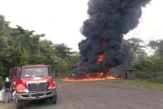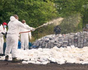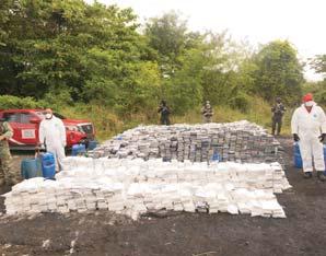 PEDRO BRAND. Un militar dominicano, con fusil en mano, es captado mientras las autoridades antinarcóticos del país incineraron ayer un cargamento de 9,868 kilogramos de cocaína que fue confiscado la semana pasada durante una revisión en el puerto Caucedo. La quema de la droga se produjo en el campamento 16 de Agosto, en la Comandancia del Ejército de la República, ante la presencia de la prensa, fiscales y militares de alto rango. P8 . INCINERAN LA DROGA.