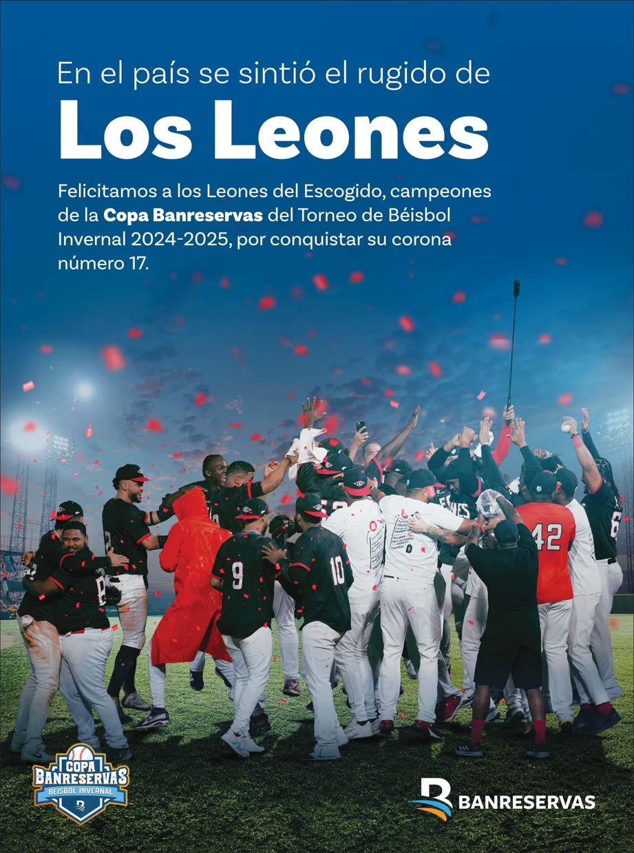 SANTO DOMINGO. Junior Caminero conectó un cuadrangular por los 411 pies en la parte alta de la novena para poner arriba a los Leones del Escogido, que derrotaron 6-5 a los Tigres del Licey para conquistar el campeonato 17 en la historia de la franquicia y su primero desde la temporada 2015-16. El dirigente Albert Pujols, en su temporada de novato, se lleva la corona al ganar el séptimo juego de la serie final. P25
