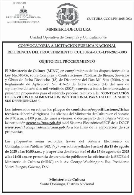 Las puertas están abiertas para toda persona que lo requiera. Están a tiempo. “Todo el que tenga un proyecto actual, o que lo prepare posteriormente, puede depositarlo donde se anunciará en su momento. Estamos abiertos a evaluar todas las propuestas”, concluyó. b CSanchez@diariolibre.com