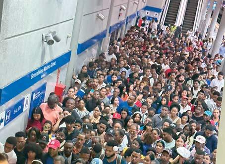 ron a miles de personas apesñucadas en la estación Juan Pablo Duarte. Aparentemente están “quedados”. Esa es la estación en la cual se hace la transferencia hacia la Línea 2 del Metro de Santo Domingo.