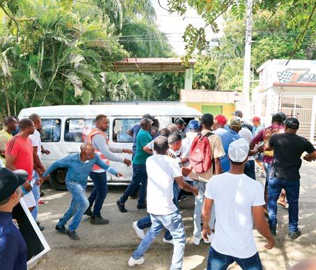 PEDRO BRAND. Dos grupos que rechazan y apoyan la construcción de una planta de reciclaje o relleno sanitario en Los Aguacates, distrito municipal La Cuaba, se enfrentaron a palos y pedradas en el momento que una parte realizaba una marcha en respaldo a la empresa gestora del proyecto. bP6