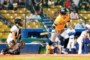 0 Raynel Delgado, de las Águilas, en acción ante Licey el pasado 6 de noviembre.