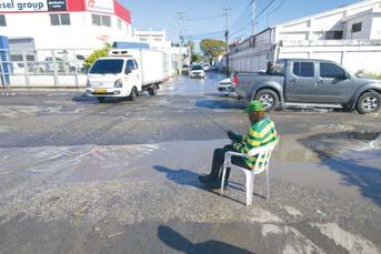 SANTO DOMINGO OESTE. No hay manera de que las autoridades solucionen el histórico charco que se forma en la calle Juan Ballenilla esquina Guarocuya en la transitada Zona Industrial de Herrera. Varios trabajos se han realizado en el lugar, pero ninguno ha logrado resolver el problema. El charco se mantiene, aunque no llueva, y los vehículos se ven obligados a meterse en el agua que cubre parte de los neumáticos. Cada vez que pasa uno, se produce un llamativo efecto de olas que se extienden hasta el otro lado de la calle Guarocuya, llamando la atención de quienes por allí pasan. Pero es un problema, no la playa. b