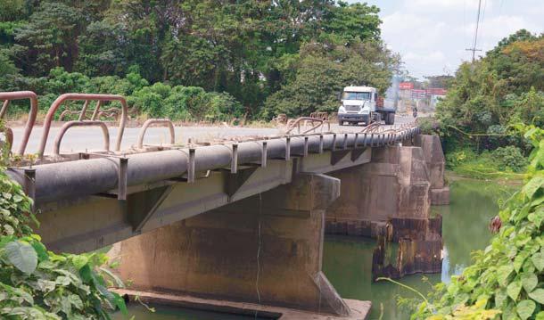 p HAINA. Las pocas barandillas que aún no se han desplomado están dobladas, el puente parece a punto de desplomarse, pero aún se mantiene erguido, recibiendo el paso de decenas de vehículos de todo peso, día tras día, arriesgándose a que en cualquier momento pueda ceder. Estas son las condiciones del puente sobre el río Manoguayabo, que hace años vio sus mejores tiempos pasar, pero no se rinde, pese al poco mantenimiento que recibe.