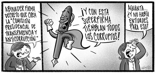 Como si las instituciones que ya existen no fueran pocas, ayer nos topamos con una nueva comisión para la lucha contra la corrupción, la cual fue creada por decreto y firmado en LA Semanal con la prensa por el señor presidente Luis Abinader. Por lo visto no es su-