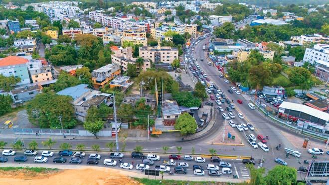 p SANTO DOMINGO. El congestionamiento del tránsito de la capital dominicana representa uno de los mayores dolores de cabeza para los ciudadanos de la primada de América, dedicando horas para poder trasladarse a sus lugares de trabajo desde sus hogares o a cualquiera otra parte de la ciudad, como se puede ver en la intersección de las avenidas Jacobo Majluta y República de Colombia, donde diariamente se aglomeran centenares de vehículos. . EL TAPÓN NUESTRO.