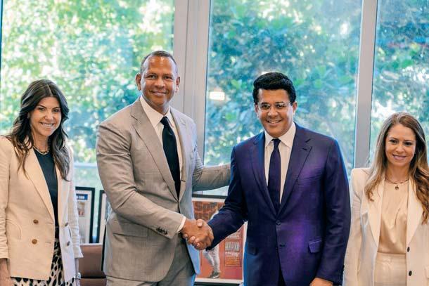 p MIAMI. El exastro de las Grandes Ligas, Alex Rodríguez, estrecha la mano del ministro de Turismo de la República Dominicana, David Collado, luego de anunciar inversiones superiores a los mil millones de dólares en proyectos turísticos de ultra lujo a desarrollarse en Playa Grande, Río San Juan, en la provincia María Trinidad Sánchez. La zona es visitada con frecuencia por figuras como Michael Jordan, Noval Djokovic y otras del jet set internacional. b P6