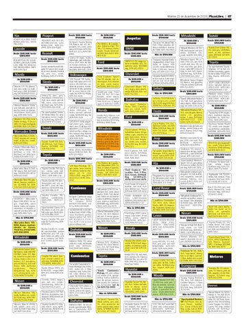 Nissan March ‘03, $250, Honda A. ‘05, full, $525, Corolla ‘99, $185mil, Corolla ‘95, $175mil, Hyundai GX 350, ‘04, $340mil, Isuzu Trooper ‘01, $260, Camry ‘92, (rep. motor) $75mil, Inf. 809-4124629, 809-307-1703.