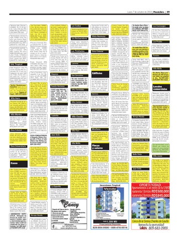 Aut. San Isidro, 190M2 2 niv. de 1era, marq., patio y jards.,com., sala, coc. c/desay., b/visitas, c/serv. c/b. 3 dorm. c/vestidor y balc. c/u, 2b y estar. RD$3.3M financ. 809707-8285/ 809-8013777/ 829-860-0053 !Preciosa Vivienda! Res. Las Glorias Km. 17, Aut. Duarte, lista para entrega, 170M2 solar, 100M2 const., 3habs, 2b, marq. tech., Financ. Disp. Por la compra se le va a obsequiar tinaco e inversor. 8 0 9 - 8 8 4 -3 7 3 7/ 8 6 5 9040/849-881-6417. Prado Oriental: RD$ 3,700,000, 192 mts2, 2 niveles, 3hab, 2.5ba, marq, proyecto cerrado, seguridad, RM 809-689-8985 Cerca Carrefour, casa pequeña, 2 niv., 3h, 1.5b, parq. cerrado, $2.4MM, Otro Apto. 2do. niv. $2.6MM. 809-224-7501. De oport. Res. en proy. cerr., Cerros de Arroyo Hondo III, Próx. Embajada USA., 296 mt2. const., 3h, 3.5b., marq. 4 vehs., patio, sala, com., family, pisos mármol, caoba, alarma, US$210mil, Cel.: 829-986-6440. Casa 600 mts. solar 30x20, ideal p/vivienda, lugar privilegiado, calle sin salida US$750,000, Lissette Del Monte Infinity Group. 809-5652161 / 809-350-3720. Urb. Juan Pablo Duarte (Mun. Sto.Dgo.Este) casa, 1er piso, 3hab, 1b, sala, com, coc, gal, 1 anexo, a/lav, tinaco, marq. 94.78M2, titulo def. precio venta: $2.3M neg. Tel. 809-963-9394 /809596-5513/809-5954963 Tenemos Muchas opciones CASA-CONSULTORIOS ó Pequeña Clínica Preparada 2 Pisos al lado Clínica San Rafael, Calle García Godoy #7 Inf. 809-330-4927 Se vende Villa en Lomas Linda. Autopista Duarte Km.29, Santo Domingo, 4,100 Mts.2 de terreno, Casa Concreto de 2 plantas, 4 Hab., 3 B., Piscina, 2 gazebos techados con Aluzinc, US$315,000. Negoc. Para Infor. llamar: (809) 221-5316 exts. 221/224 Don Bosco, 2 casas x precio de 1, 1ra y 2da plta. Bien distribuidas, verjada. $8.5M. 809-704-7593. SE ALQ. AV. J. MAJLUTA.CIUDAD MODELO(RES. MIRAVALLES) ;CASA 2 niveles. En 1er.niv.:Sala,Com.,1 Baño,Cocina-Desay., cto.serv.c/b,área lav., terr.ymarq.doble;en 2do. niv.:3habs.(princ. c/w.closet y baño),1 baño,terraza. RD$10,500. (809) 532-7240; (809) 8513949