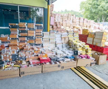 pHAINA. El ministerio de Industria, Comercio y Mipymes (MICM) incineró ayer casi 20 millones de artículos de contrabando, incluyendo cigarrillos, alcohol y medicamentos que fueron incautados por las autoridades. El ministro Víctor “Ito” Bisonó indicó que los artículos decomisados en los últimos cuatro años habrían representado pérdidas por más de 4,500 millones de pesos en ingresos aduanales para el Estado dominicano. b P28