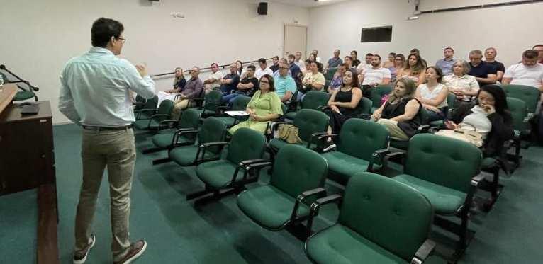 Na manhã desta segunda-feira (18), a Associação dos MunicípiosdaRegiãodeLaguna (AMUREL), foi palco da palestra de apresentação da reforma tributária. O evento, organizado pela Escola de Gestão Pública (EGEM), em parceria com a Empresa Contributo Estudos Tributários, teve como palestrante o renomado especialista em Direito Tributário e Gestão Pública, Adriano dos Santos e, destinado às cidades da entidade, tendo como missão, preparar os fiscais de tributos, auditores, responsáveis pelo movimento econômico de ICMS, contadores públicos, con-