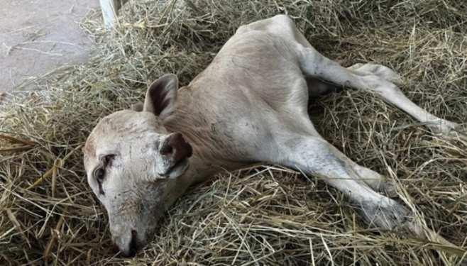O animal pertence ao agricultor Vitorino Caglione, de 80 anos, que relatou o espanto ao encontrar a cria. Segundo ele, a vaca havia parido durante a madrugada,masabezerrafoiencon-