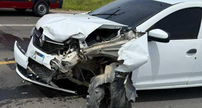 Um acidente de trânsito registrado na manhã deste sábado (15), por volta das 10h36, deixou quatro pessoas feridas na SC-100, na altura da Rua Claudino Abel Botega, no bairro Morro Bonito, em Jaguaruna. A colisão envolveu dois veículos: um Renault Sandero, de Balneário Camboriú, e um Fiat Siena, de Tubarão.