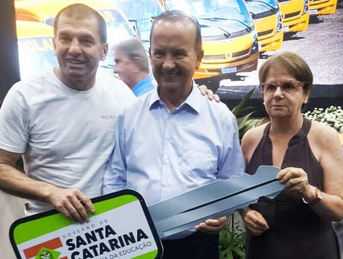 A solenidade de entrega aconteceu em Florianópolis e contou com a presença do governador Jorginho Mello, do prefeito Nenem Bardini e da secretária municipal de Educação, Marta Burato. A ação integra o programa Educação Levada a Sé-