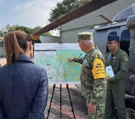 A través de un puente aéreo integrado por dos helicópteros del Gobierno del Estado, dos de la Secretaría de la Defensa Nacional (Defensa), uno de la Secretaría de Marina (Semar) y otros