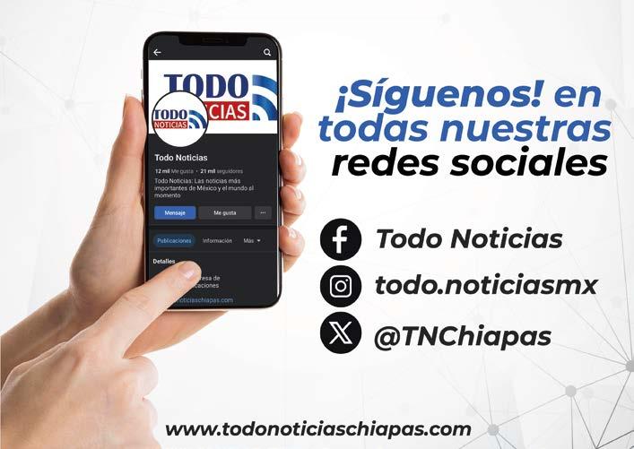 TODO NOTICIAS: El Portavoz de la Información. Periódico de lunes a viernes. Editor responsable: Jesús Álvarez. Número de Certificado de Reserva de Derechos al Uso Exclusivo: en trámite. Domicilio de la Publicación, Imprenta y Distribuidor: Primera Norte Oriente 1445, Planta Alta, Col. Centro, C.P. 29000. Tuxtla Gutiérrez, Chiapas.