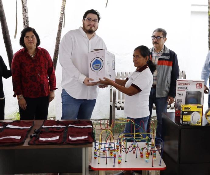 DIF Estatal, presidido por la licenciada Clara Mora Juárez, que fueron el resultado de una gestión atendida con prontitud y eficacia, resultando en la entrega de un pintarrón, escritorio, silla para el docente, mesa y silla infantil, anaquel, computadora de escritorio, proyector, rotafolios, archivero, tapete de foamy, caja organizadora, ventilador de pared, cambiador para niños, bocinas, cuentos, colchonetas, mesa de laberintos, bancubi, carteles educativos, rompecabezas, figuras geométricas, acuarelas, loterías, maracas de madera, memoramas, aros hula-hula, conos de señalamiento vial, pelota, cuerda para brincar, libros, megáfono de 25 watts con grabador de voz y batería