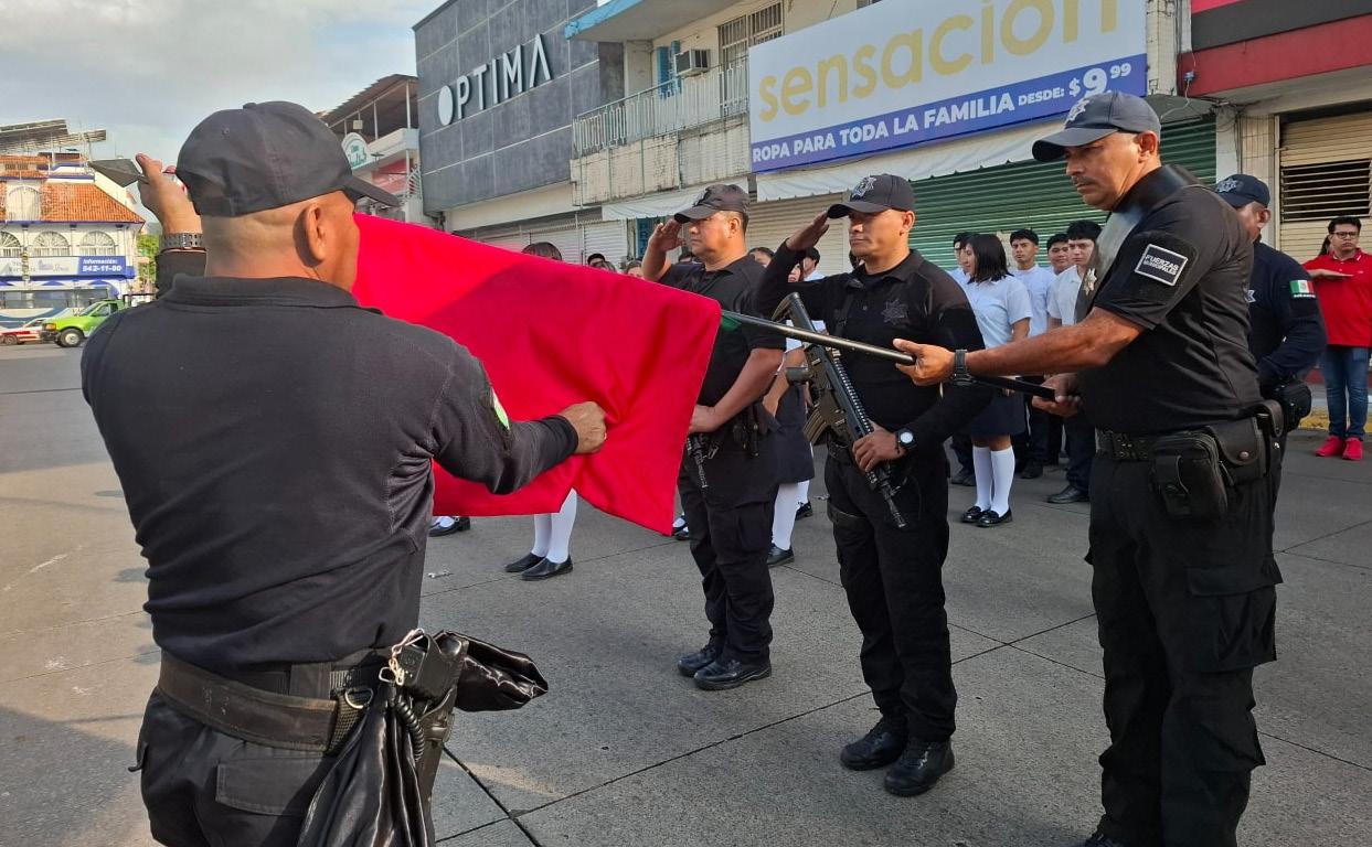 Cerrando el calendario de actividades cívicas por el mes patrio, la mañana de este martes 30 de septiembre, en representación de la alcaldesa de San Andrés Tuxtla, la doctora María Elena Solana Calzada, regidores, directores de área, la escolta de la policía municipal y alumnos de la Escuela Secundaria y Bachilleres Doctor Isaac Ochoterena (ESBIO), rindieron honores a la bandera y montaron guardia de honor en el monumento a don Miguel Hidalgo y Costilla, para despedir este periodo en el que se celebra la lucha que hizo de México una nación independiente. Representando a la doctora María Elena Solana Calzada, estuvieron en el presidium los regidores María Elida Pino Villaseca, Mayra Patricia Xolo Hernández, Edgar Leoncio Antemate Caixba, Abelardo Javier