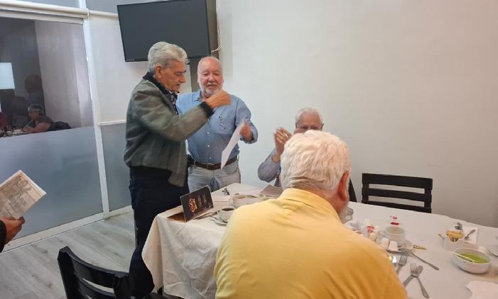 orgullo, por eso hoy que recibimos la importante visita de tan especiales personalidades, a nombre de la Alcaldesa de San Andrés Tuxtla, la doctora María Elena Solana Calzada, les damos la más cordial bienvenida a nuestros visitantes distinguidos y haremos entrega de estos reconocimientos a cada uno de ellos” expresó el directorde Comunicación Social. Alejandro Valencia Valencia dijo a los visitantes que espera que su estancia sea placenteta e inolvidable, al tiempo que hizo extensivo el aprecio de la alcaldesa, quien por su agenda de trabajo no pudo estar presente, pero a través de estos reconocimientos les hace saber que son siempre bienvenidos. Para esta entrega de reconocimientos acompañó como anfitrión el ingeniero Héctor Rodríguez Turrent y como invitados especiales el periodista Isidro Jiménez Ortiz , quienes atestiguaron el momento en que los ingenieros Clemente García Álvarez, José Luis Flores Ruiz, Emilio Cota García, Francisco Ayala Martínez, Isidro Razón Lambrozo, Tomás Pluma Terán, Raymundo Ramiro Nuño, Agustín Tenorio Solorzano, Andrés Teniente Valiente y Porfirio Palafox recibieron la distinción.