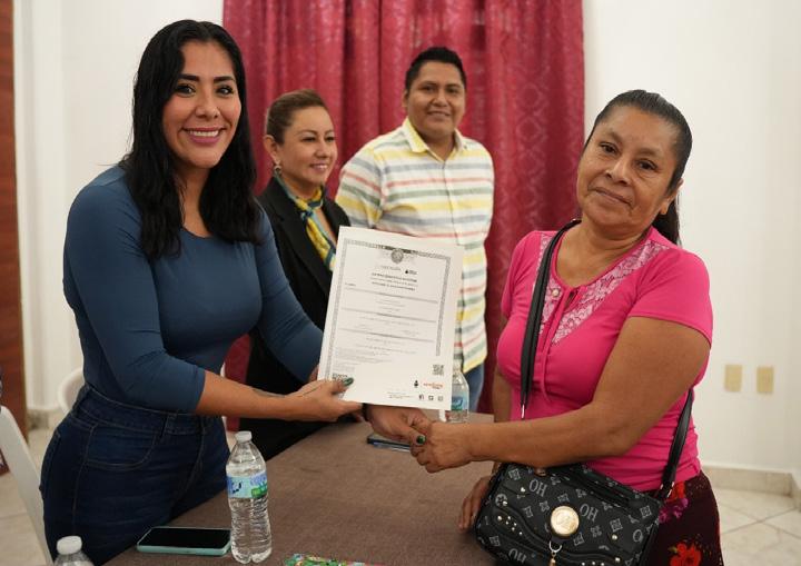 Preside alcaldesa de San Andrés Tuxtla, entrega de certificados en la reunión a alfabetizados del programa PROABIM en coordinación con el IVEA