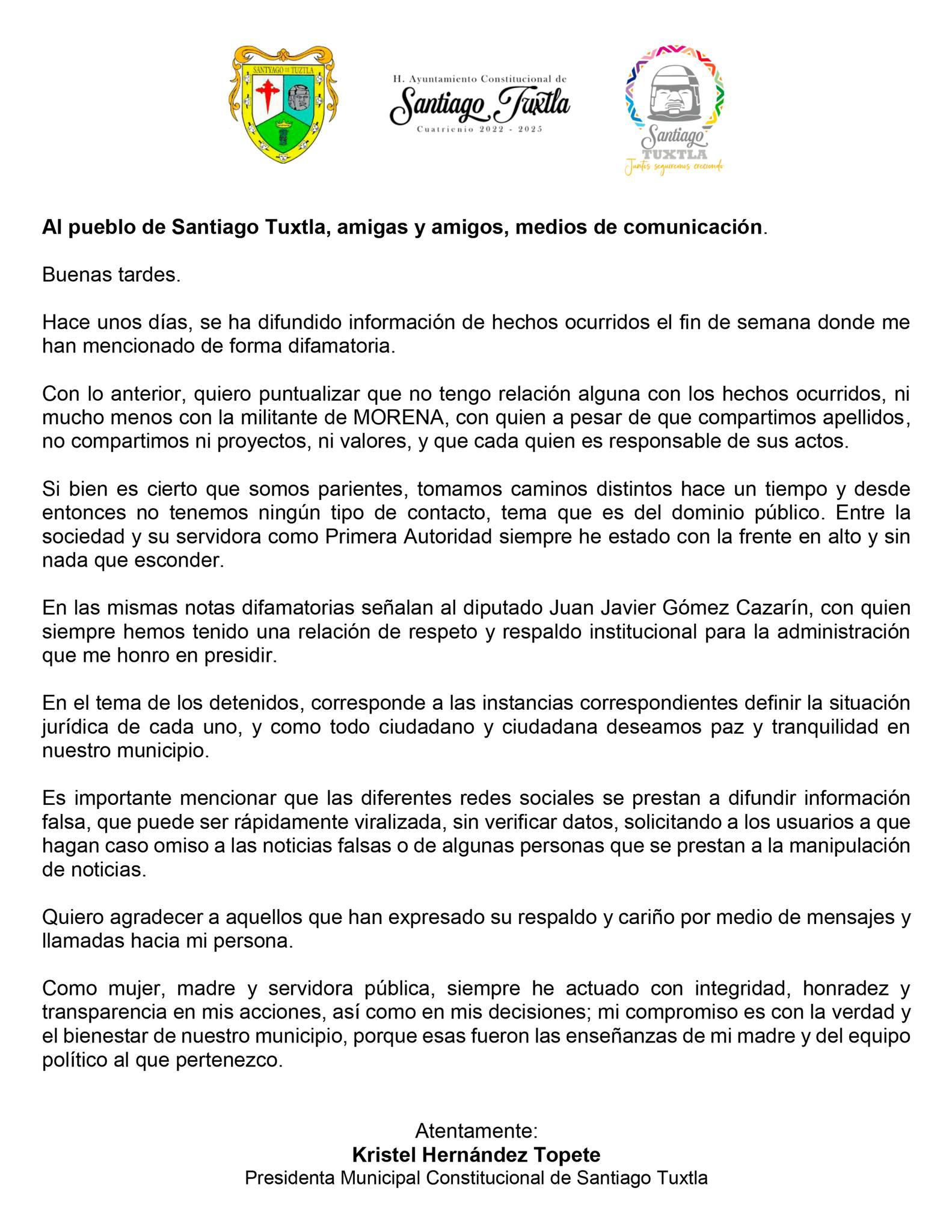 La presidenta municipal de Santiago Tuxtla la Profa Kristel