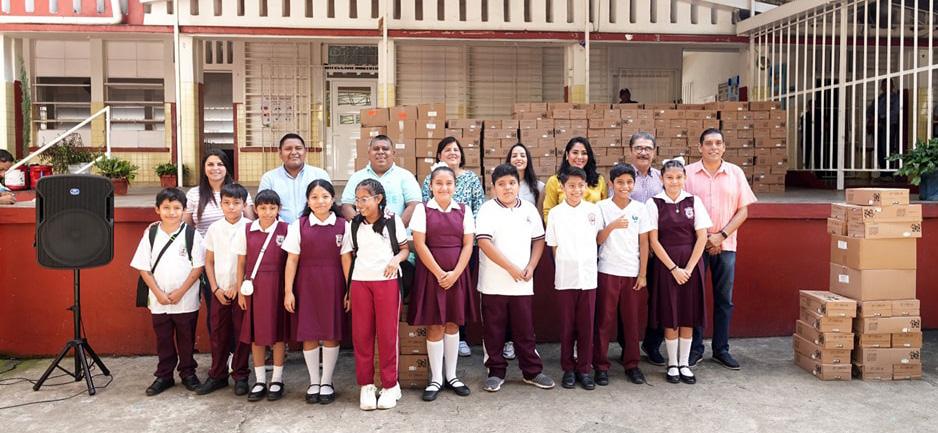La entrega tuvo lugar en la escuela primaria Josefa Ortiz de Domínguez, donde la población escolar recibió los apoyos de este programa cuyo padrón ha seguido creciendo abarcando cada vez a mayor número de escuelas.