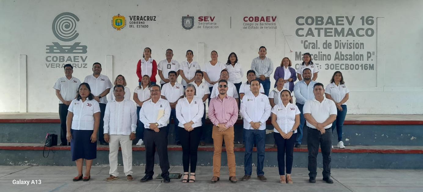 del semestre 2025 A del COBAEV plantel 16, el Regidor Tercero Prof. Marco Antonio Brizuela Alcocer, quien fue recibido por la Directora Lic. María Teresa Moreno Gómez y docentes del plantel educativo. Enhorabuena y éxito a los alumnos que hoy inician sus estudios de bachillerato.