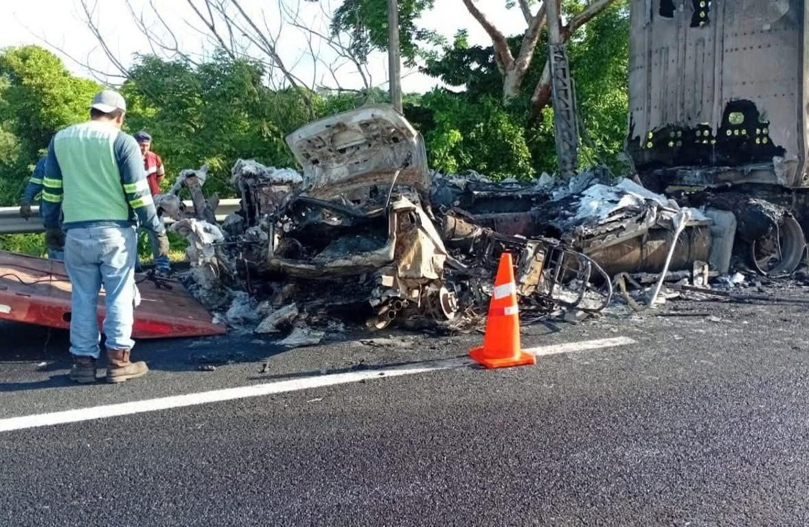 Choque entre tráiler y Jetta deja un muerto y animales calcinados sobre la carretera 180