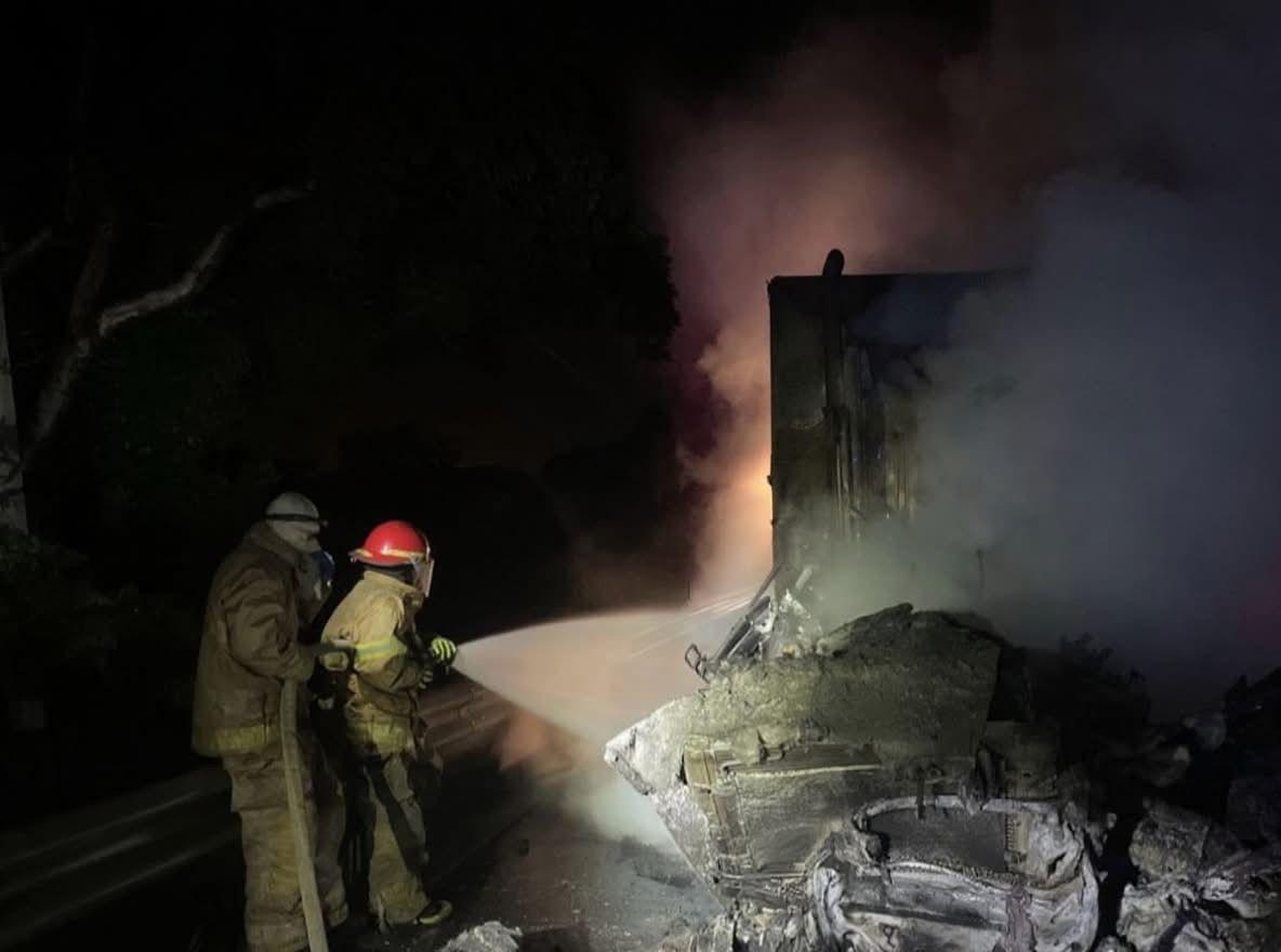 Elementos de emergencia participaron en las labores de auxilio y control del siniestro, destacando la ambulancia U-183 y la pipa cisterna 169, cuyos operadores trabajaron durante varias horas para sofocar el fuego y enfriar las unidades.