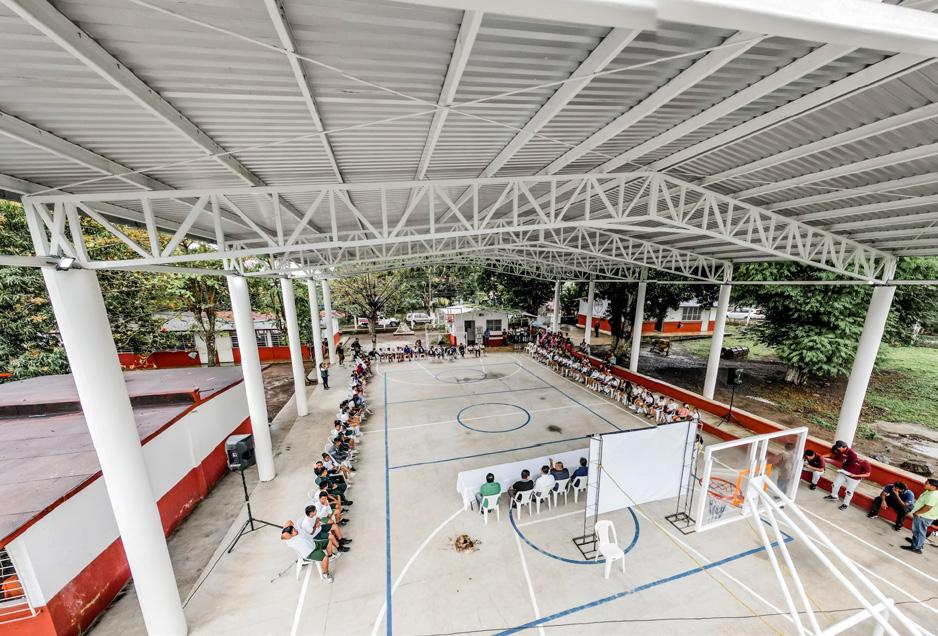 Concepción Carmona Caldela y Gabriela Díaz del Castillo Domínguez, quienes fueron recibidos por autoridades académicas, padres de familia y alumnos del plantel beneficiado. Mejorando las condiciones para que los alumnos realicen sus actividades cívicas y deportivas, este techado cubre una extensión de 494.10 metros cuadrados y con una base de concreto armado de 566.85 metros cuadrados, beneficiando a los 116 alumnos del plantel con un espacio digno que se realizó con un costo de 1 millón 623 mil 69.47 pesos.